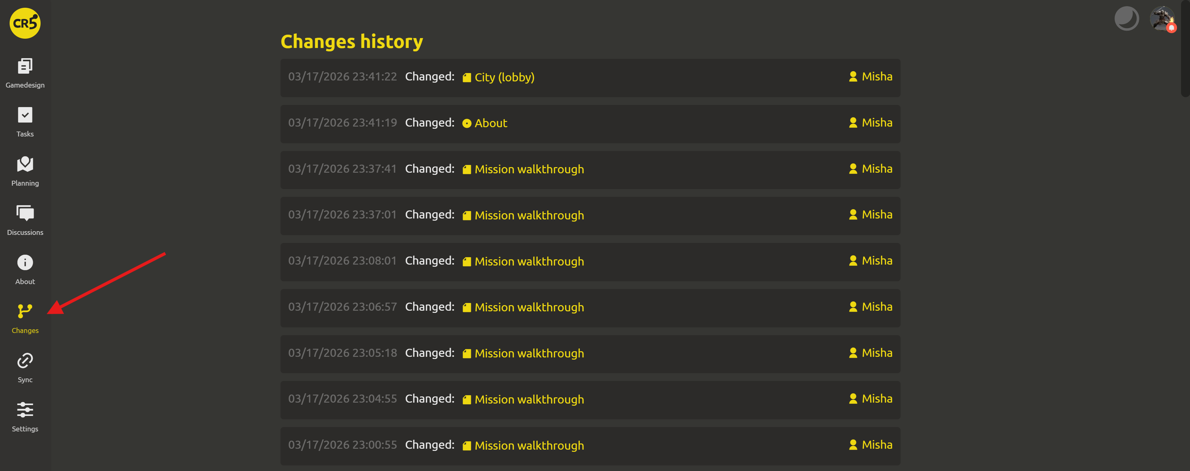 A list of all changes can also be tracked in a special "Changes" section.