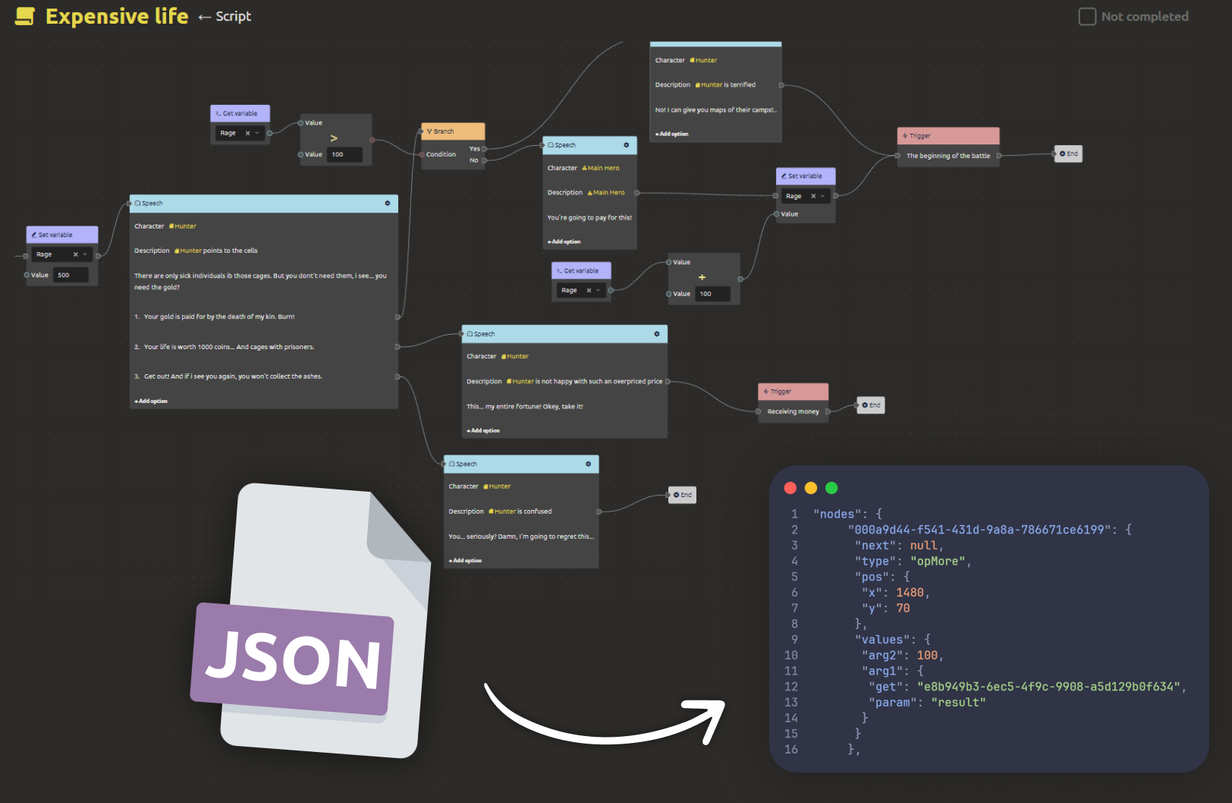 Scripts and dialogues began to come to life right before your eyes!📖 The presentation is like a real novel✨, and debugging is complete with a breakdown of paths and variables🔍. Switch, rewind⏪, and change the characters' fates.