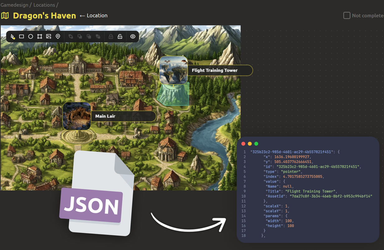 ✅ Visual Design: Drag & drop GDD elements directly to level maps with labels