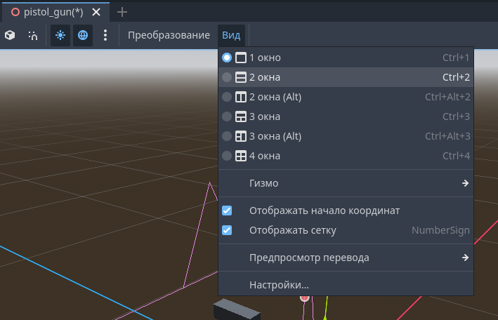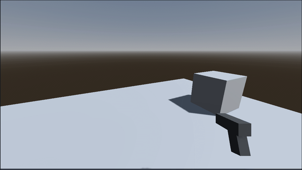 Можно было бы уже пострелять лучом по болванчикам, но без некоторой отдачи и визуализации это не интересно. Нужно смастерить ствол, которым мы будем угрожать близлежащим кубам. Пусть это будет пистолет.
