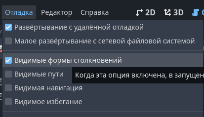 Рис. 10. Включение видимости коллизии объектов и областей.