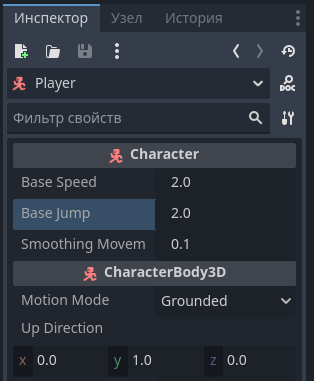 Есть хорошая практика, что название файла должно совпадать с названием класса в нем описанном. Переименуем файл из “characted_body_3d.gd” в “character.gd” в соответствии со стилем именования файлов.