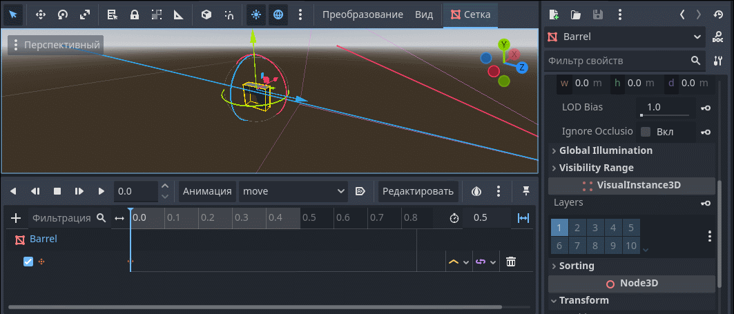 Во-первых, обратите внимание на новый узел, добавленный на сцену: AnimationPlayer. Этот узел позволит создавать и воспроизводить анимации этой модели.