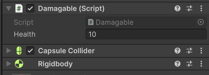 Реализовывать будем в обратном порядке и начнем с Damagable