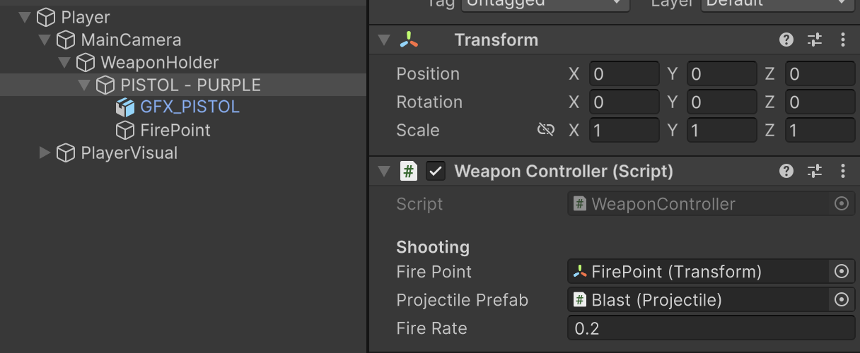 Позже мы добавим в оружие больше механик, но для обычной стрельбы нам хватит и этого.