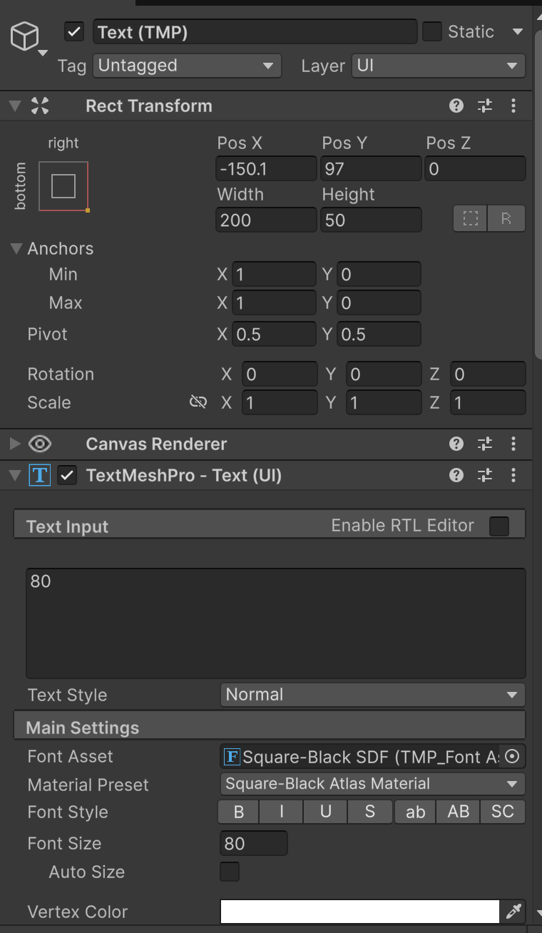 Create > UI > Text - TextMeshPro