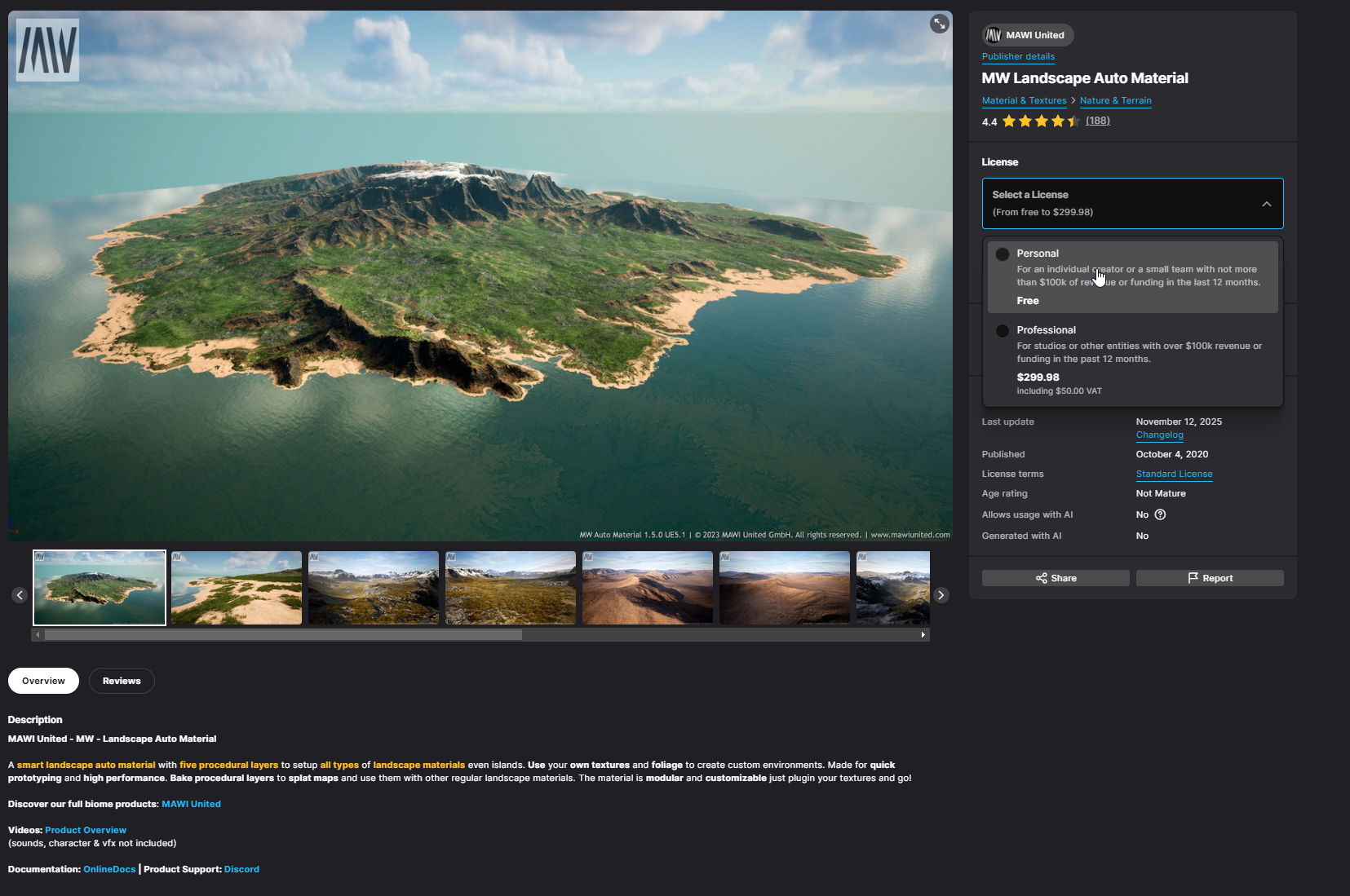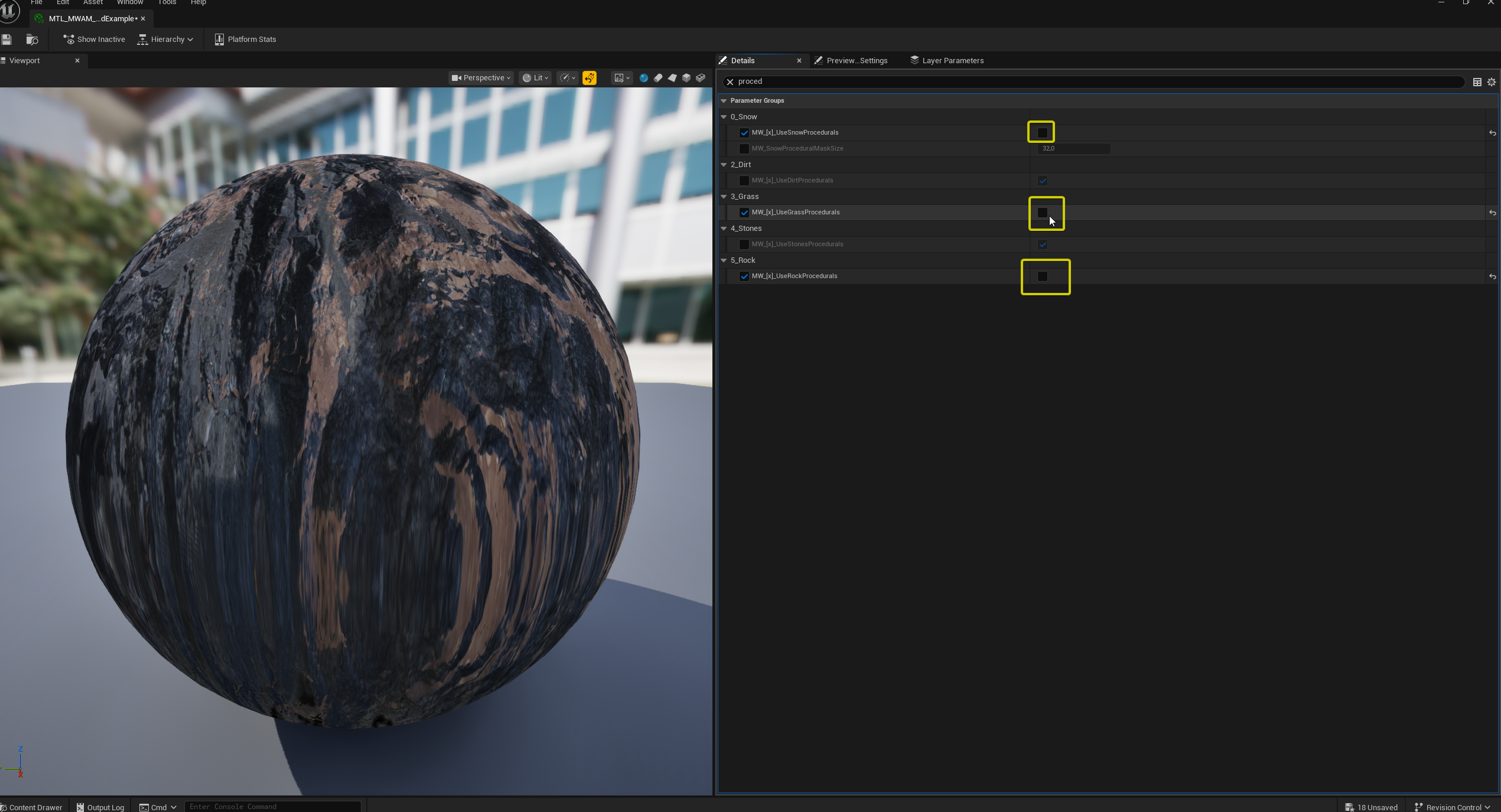Для ландшафта я взял с Fab вот такой материал MTL_MWAM_Landscape_IslandExample из пака MW Landscape Auto Material