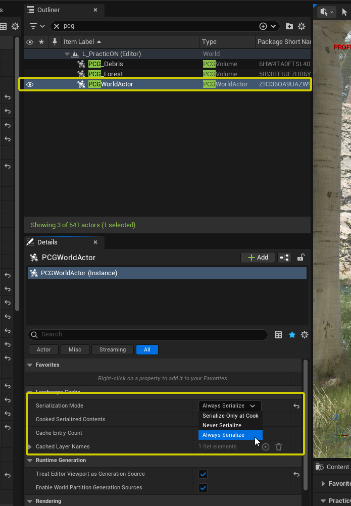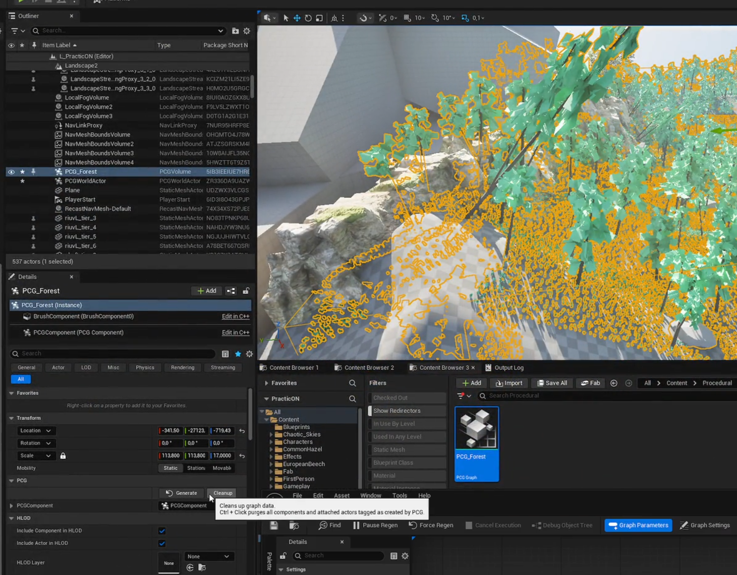 В процедурной генерации можно настроить там чтобы объекты спавнились посекционно, а не все сразу. Для этого нужно на акторе PCGWorldActor (найти в Outliner) включить SerializeMode: Always Serialize (хотя эту опцию стоит включить в любом случае) и Treat Editor Viewport as Generation Source