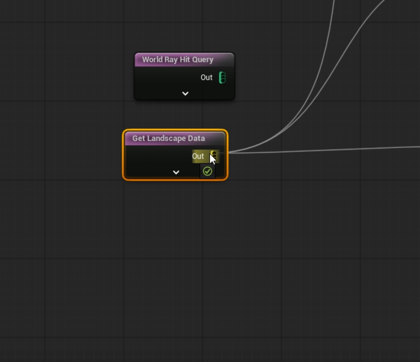 Поменяем World Ray Hit Query на Get Landscape Data, пока что нам ничего не нужно ничего кроме ландшафта. Так что сделаем вот так