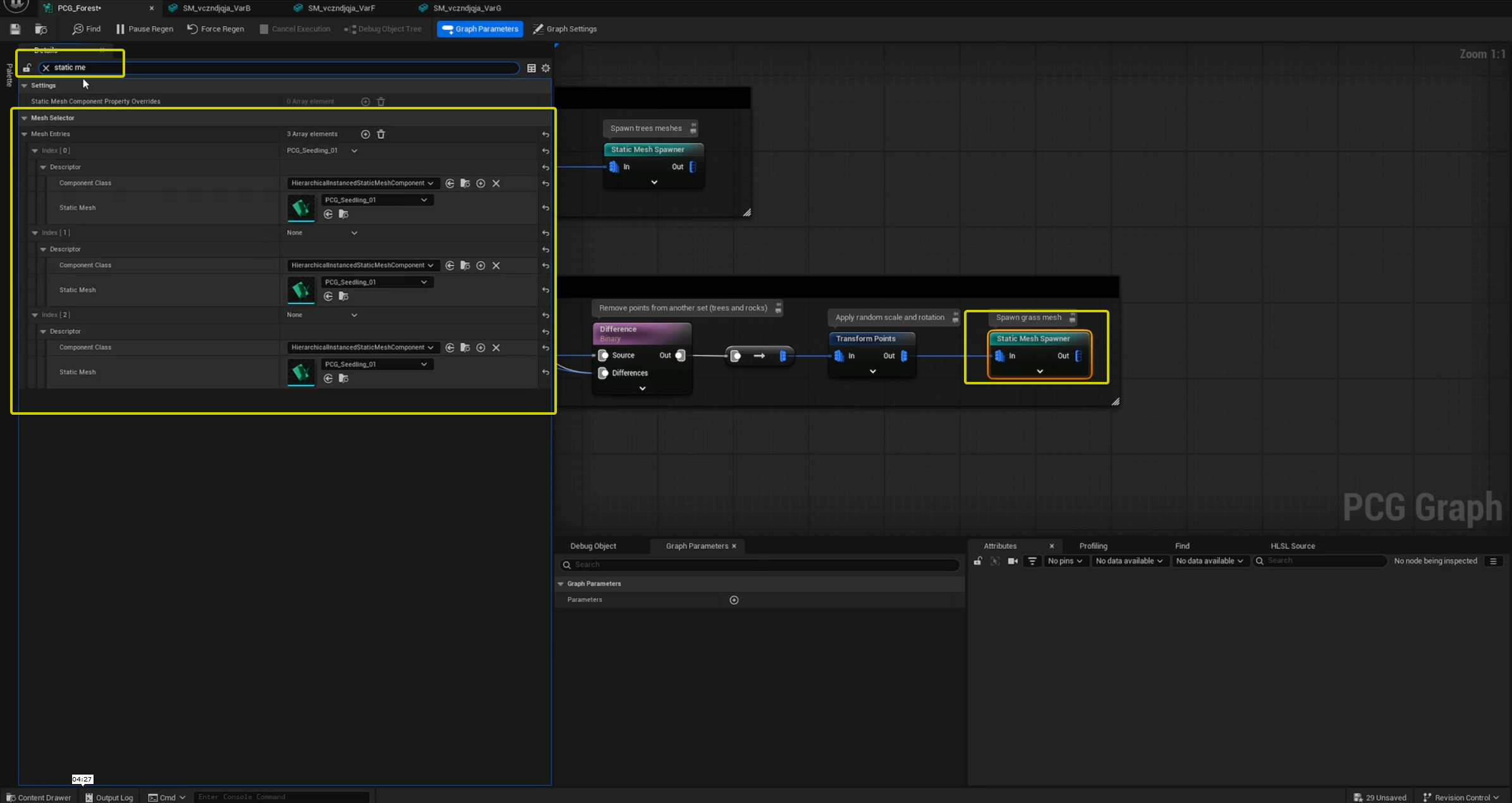 Static mesh Spawner - место где мы проставляем статические мешки которые будем процедурно расставлять на сцене