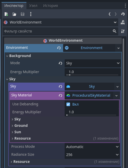 Добавьте собственное окружение WorldEnvironment на сцену и настройте фоновые облака (рис. 13).