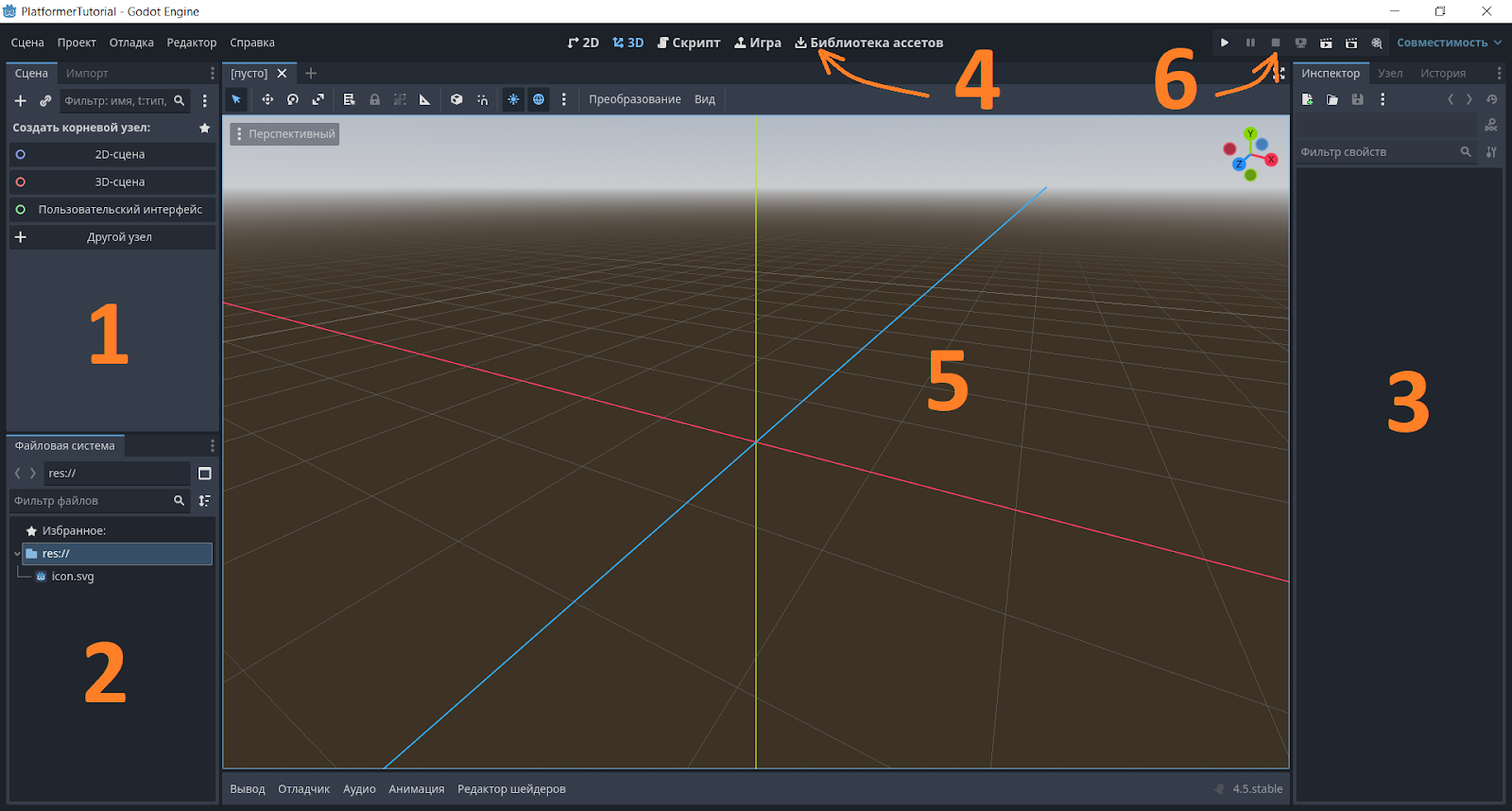Игровая сцена и объекты на ней представляют дерево взаимосвязанных узлов, которые предоставляют отдельные функции, возможности для ваших объектов. Каждый узел на сцене можно настраивать и программировать. Для наглядности, давайте рассмотрим это на примере создания персонажа в мире будущей игры.